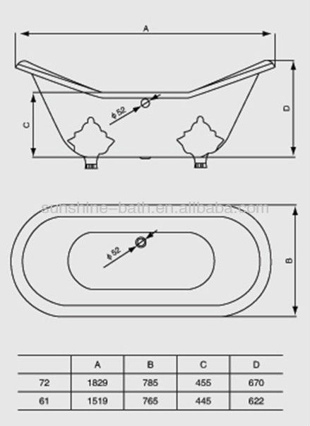 This cast iron double slipper claw foot tub features solid brass lion feet. Provides tap drilling for tub rims, or fewer tap holes for faucets mounted on freestanding fixtures or bathroom walls. |