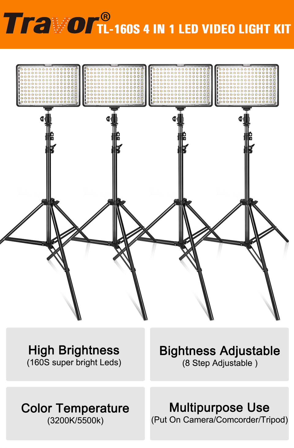 The Travor 4-in-1 TL-160S helps ensure the perfect setup for your photography or video subject. With its lightweight and durable construction, you can take this light with you wherever you go.