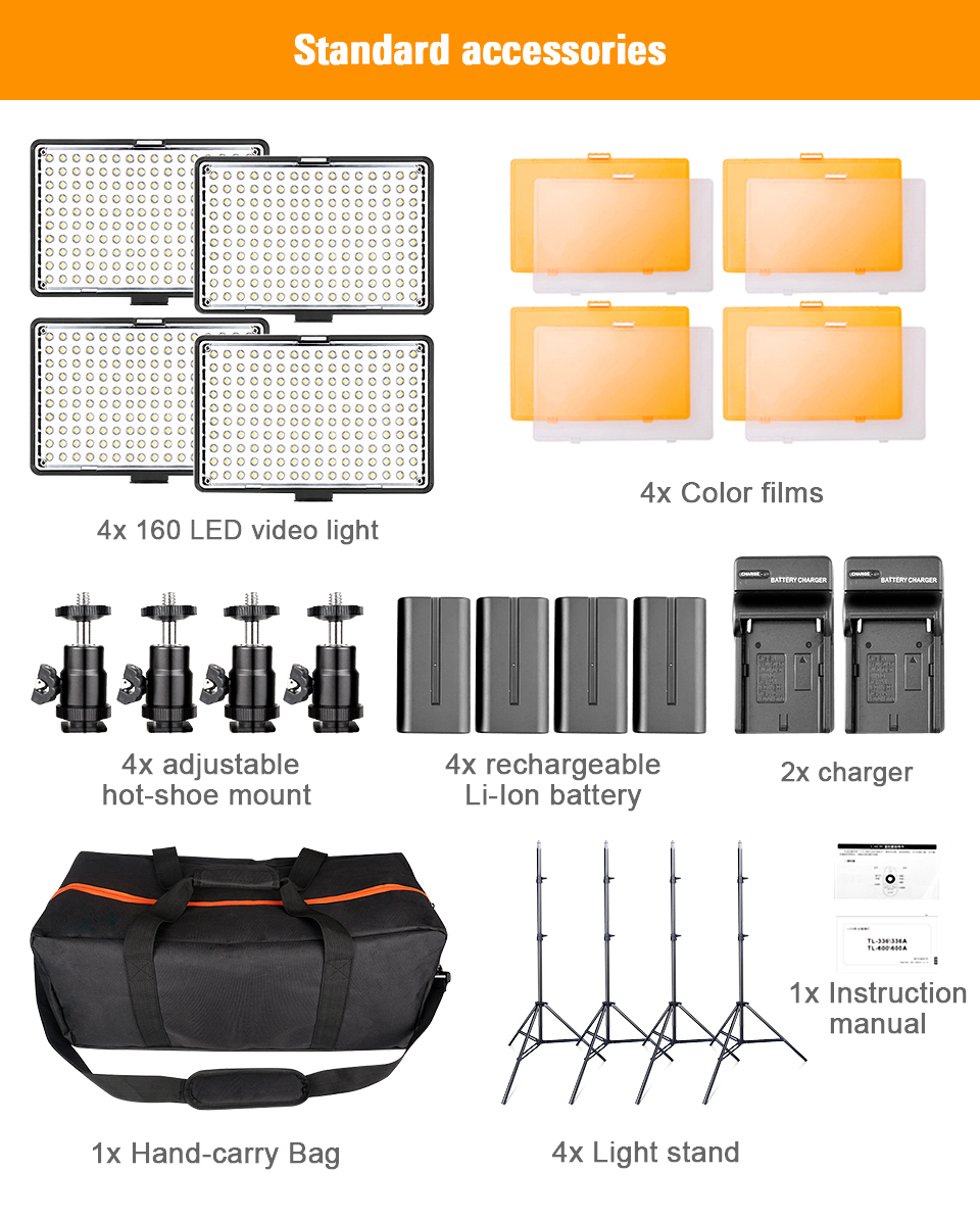 | Number of LEDs: | 160PCS* 4 | power supply: | NP-F550 lithium-ion battery |
