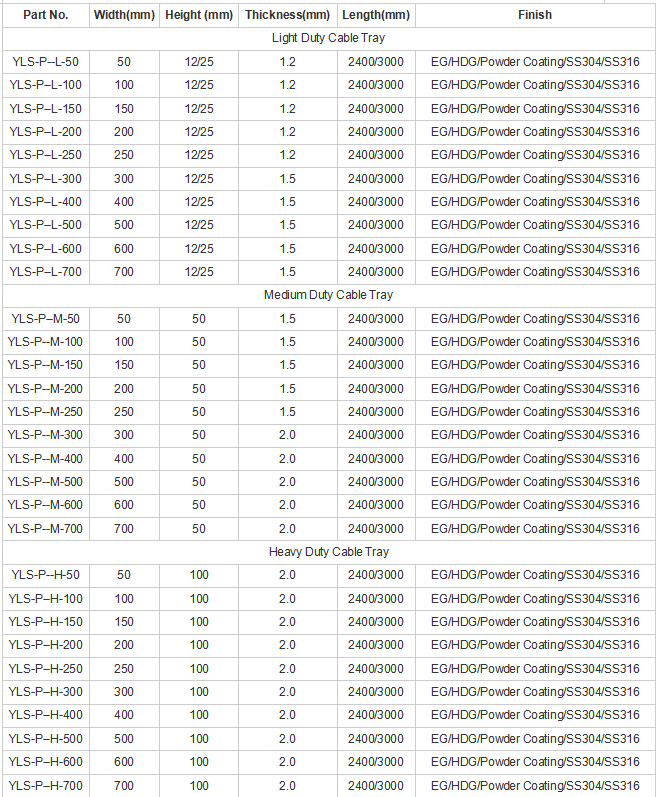 type: Ladder frame, cable ladder/cable trough/cable tray Export scope: Cable Tray/Cable Ladder/Perforated Tray Cable payment terms: L/C, Western Union, T/T Certificate: CE/ISO-9001 business type: manufacturer maximum. Workload: 350kg, subject to availability Finish: Zinc aluminum/Hot dip galvanized.... -
