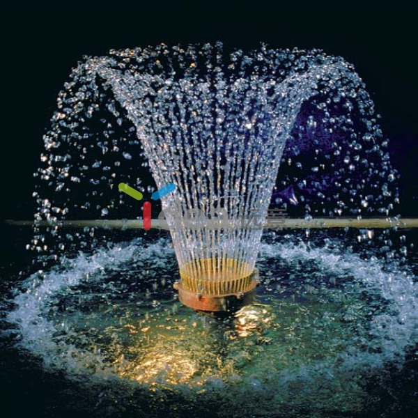 This fountain nozzle is composed of several nozzles, the effect is like a crown, very beautiful. Crown nozzles are independent of water level and can be located in dry areas.