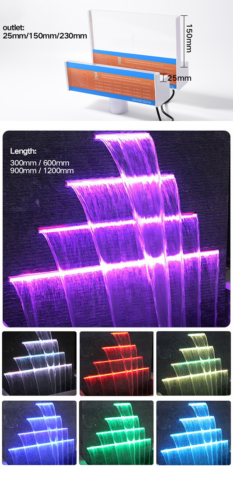 Garden Acrylic Plastic Waterfall Spray Room RGB Swimming Pool Cascade