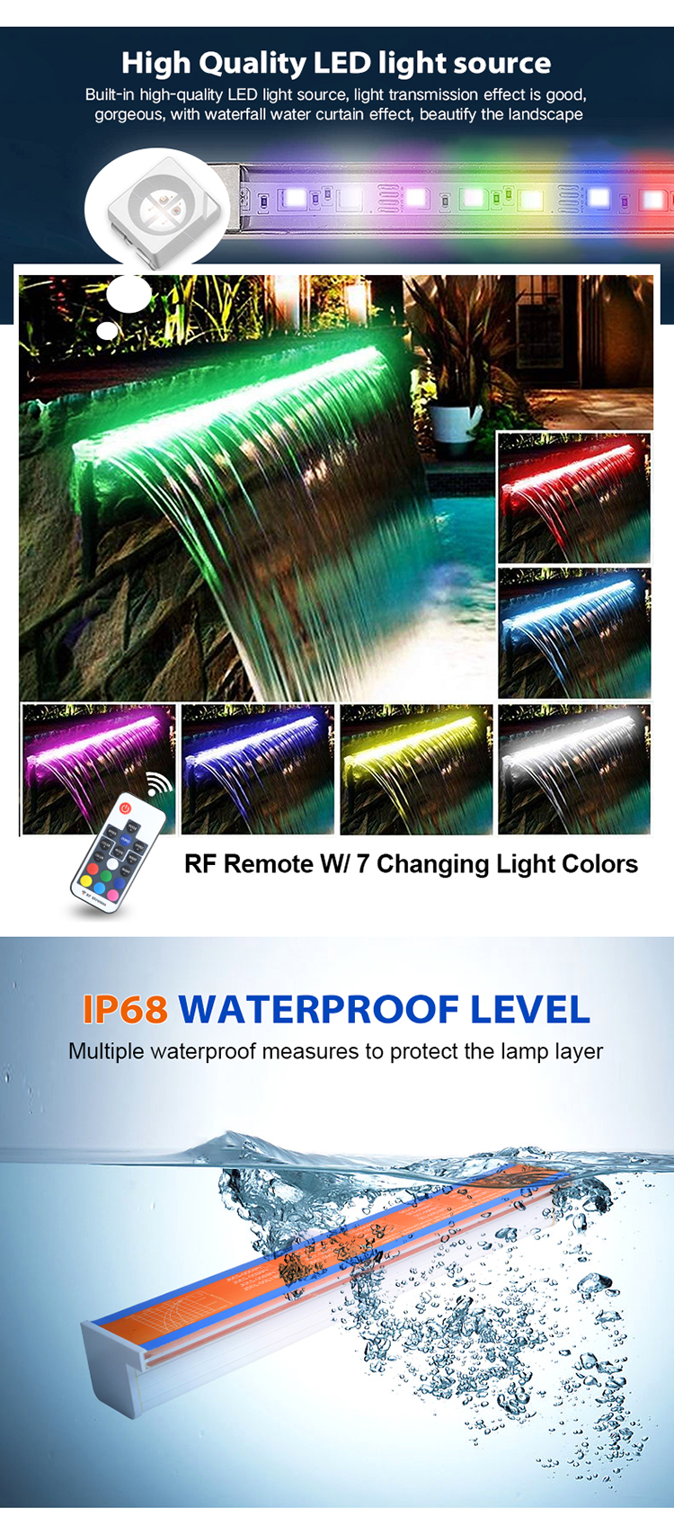 | Key words: | LED swimming pool waterfall light | Supply capacity: | 50000 pieces per month |