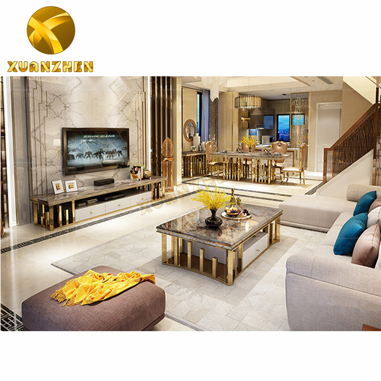 Modern living room furniture coffee table and marble tv cabinet with drawers