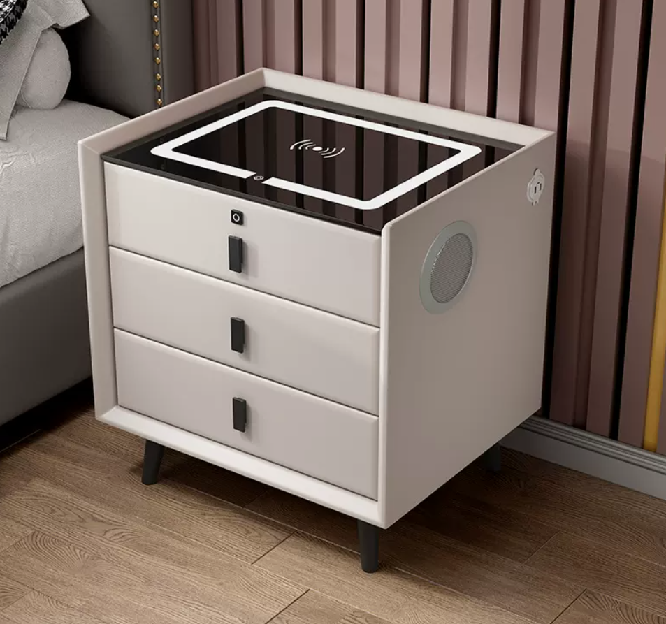 New Nordic Bedroom Smart Nightstand High Quality All Inclusive Technology with Speaker and LED Light Design