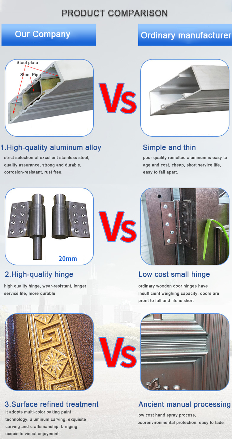 size: Custom sizes accepted Surface treatment: powder coating Key words: Aluminum front door payment terms: L/C, Western Union, D/P, D/A, T/T, MoneyGram color: Customized colors Package preview: After-sales service: Online technical support, on-site installation, on-site training, on-site...... -