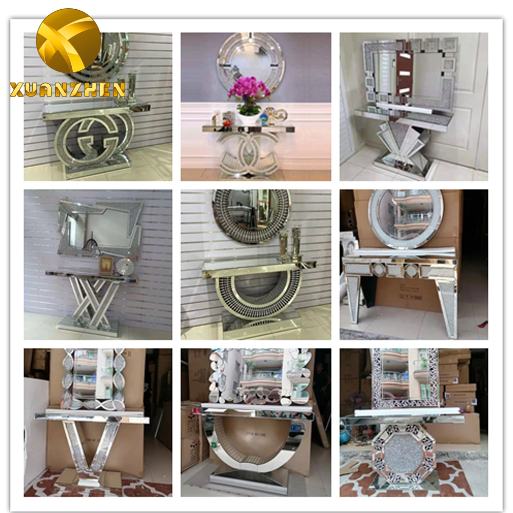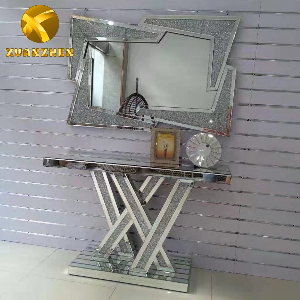 Foshan Factory Wholesale Entrance Table Broken Crystal Diamond Entrance Table Set with Mirror Modern Home Picture 1 Set