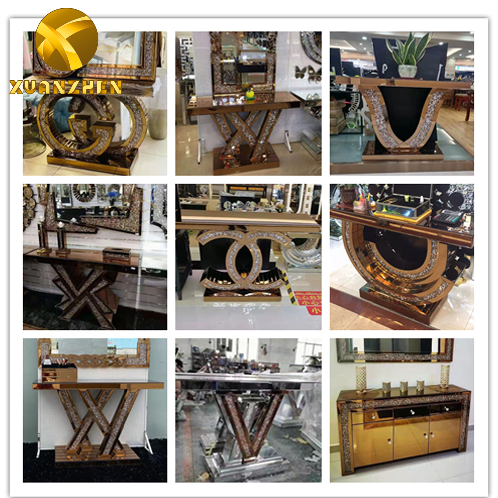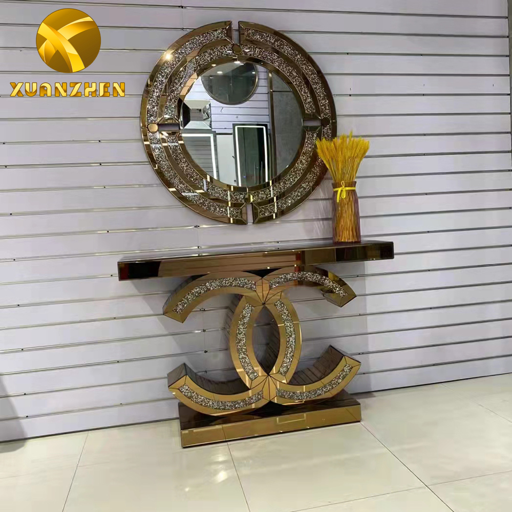 2022 hot sale mirror furniture console table crush diamond living room
