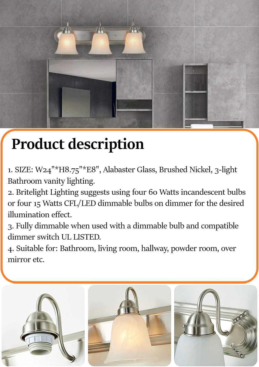 ETL UL Certified Modern Decorative Vanity Table Lamp 24 Inch Alabaster Glass 3 Lights Bathroom Wall Light