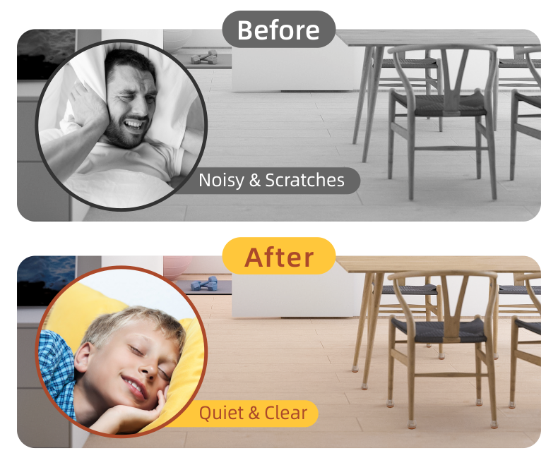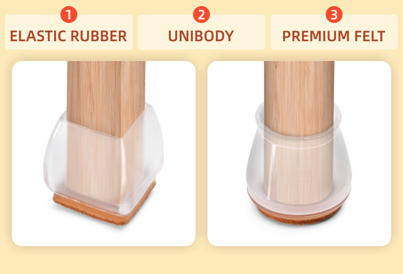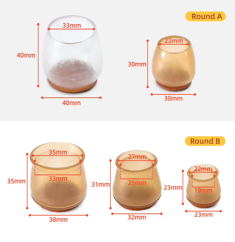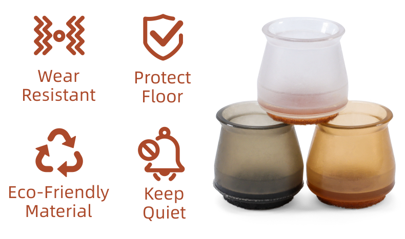 Silicone Chair Feet Floor Protectors with Felt Foot Covers for Wooden Floors