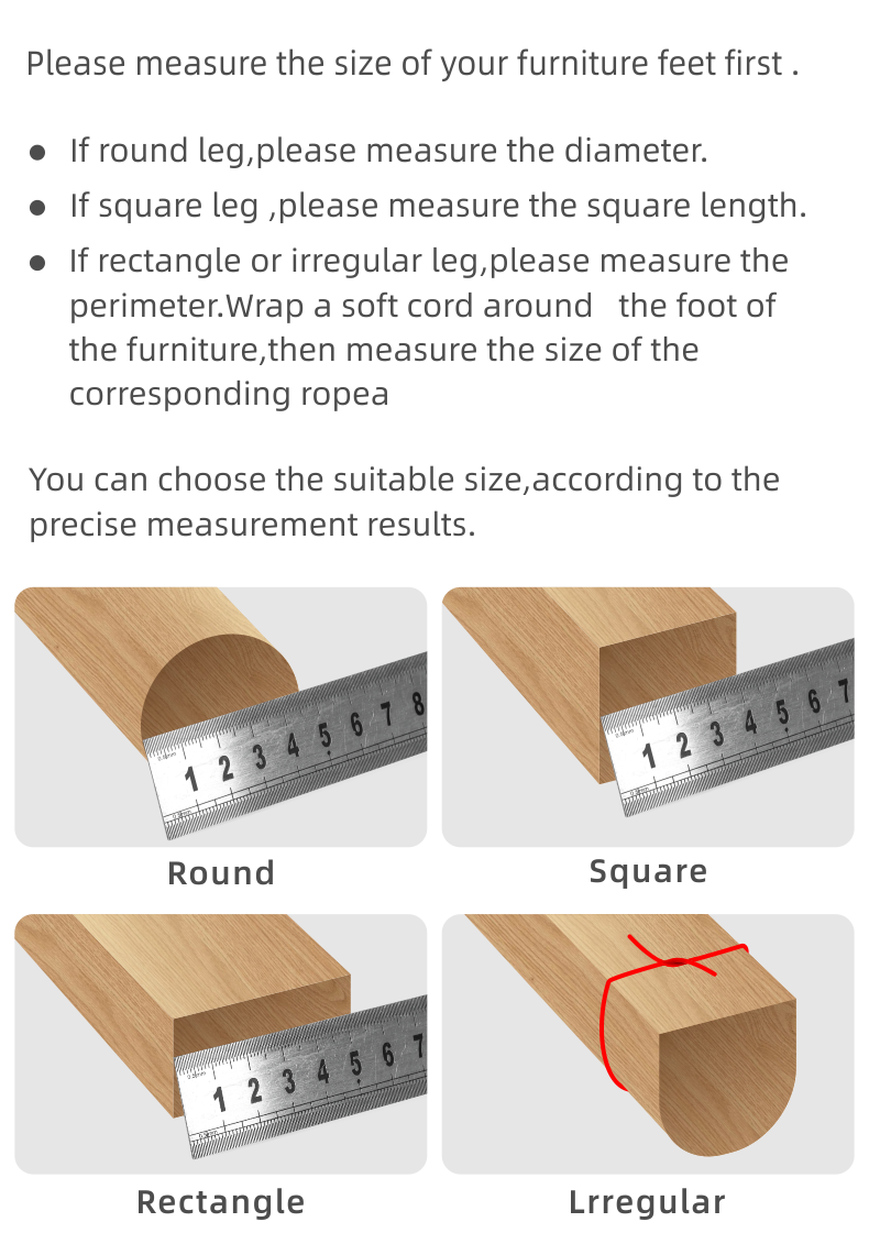 | thing: | Leg protectors, chair leg pads, furniture adhesive felt pads | usage: | furniture foot protection |