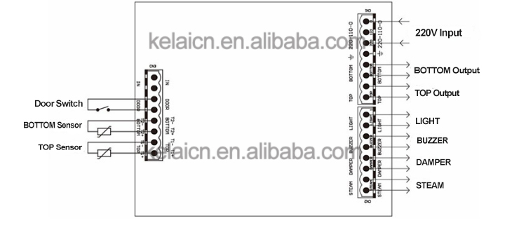 Top output: 5A/250V Bottom output: 5A/250V Optical output: 5A/250V Buzzer output: 5A/250V Throttle output: 5A/250V Steam output: 5A/250V |