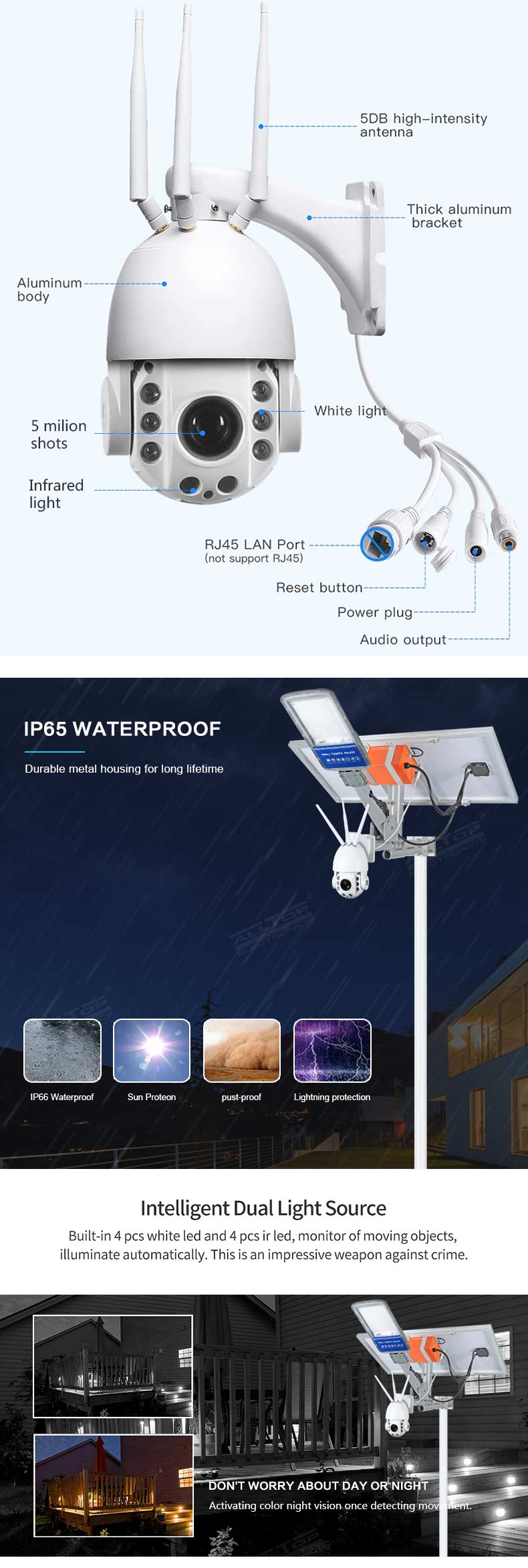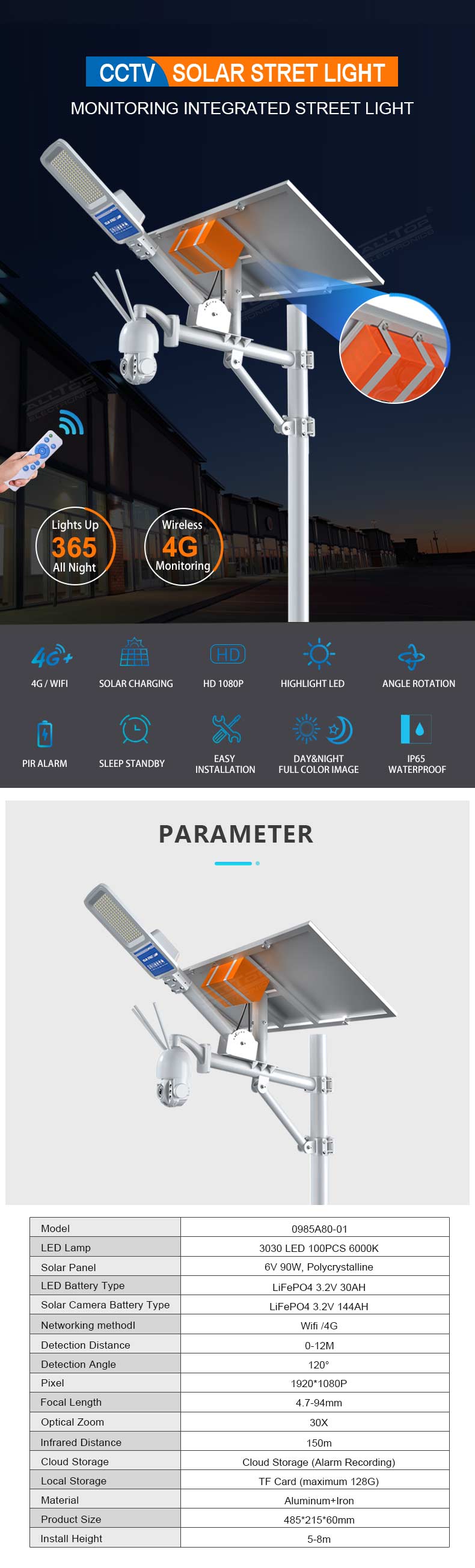 High quality street light with 4G wifi solar street light with camera LED solar video light WIFI&4G version Product Description Product Description Using a 3-megapixel high-definition 1080phd camera, high-definition photography can be maintained at night A variety of products are available, welcome.... -