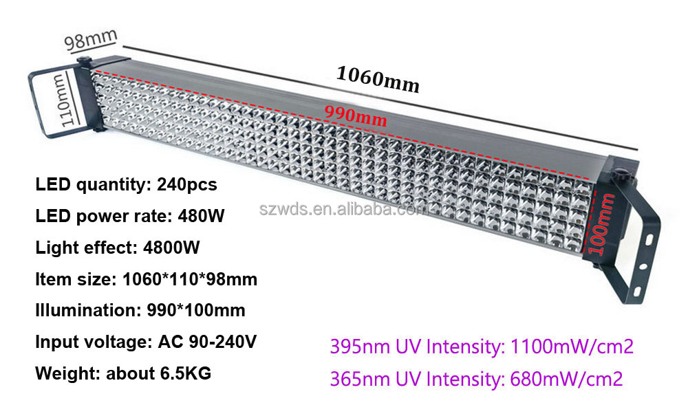 1060mm Length 4800W 365nm 395nm 240LED UV Glue Curing UV Screen Printing Curing LED UV Ink UV Black Light