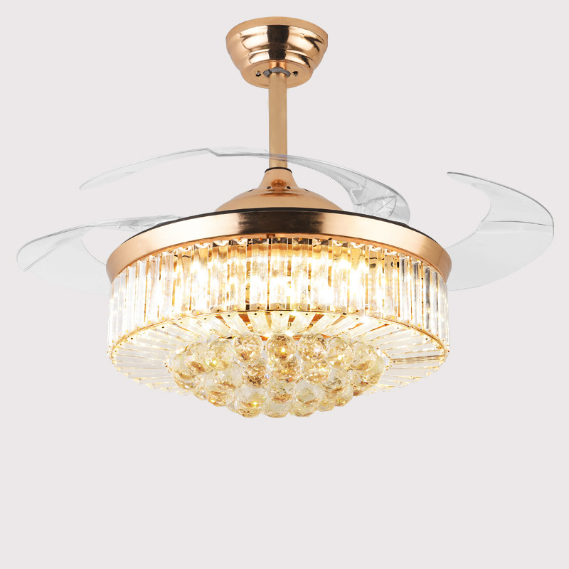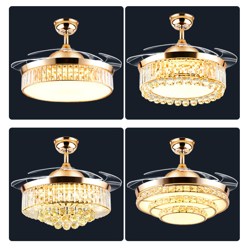 Crystal ceiling fan lamp invisible telescopic blade fan chandelier high light transmission LED fan lamp