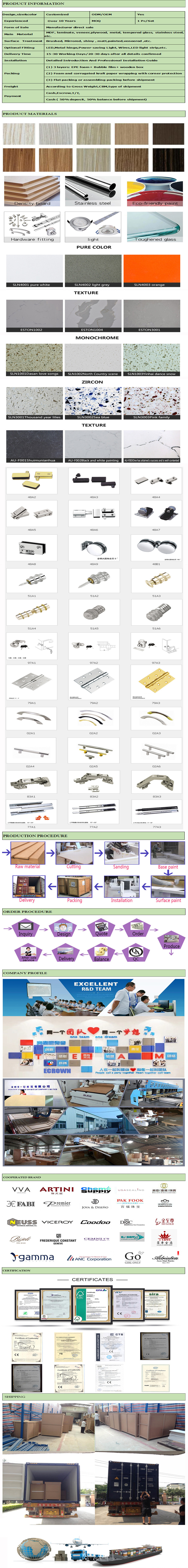 Material | Wood, metal, stainless steel, tempered glass, MDF, FR-MDF, LED light quality hardware, acrylic, laminate, wood veneer or any combination. | ||