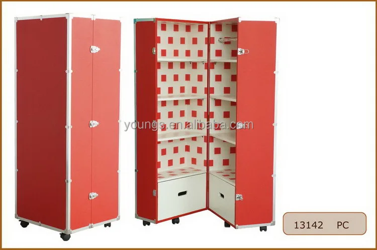 Leather Covered Wooden Vintage Wardrobe Cabinet Display Case Display |