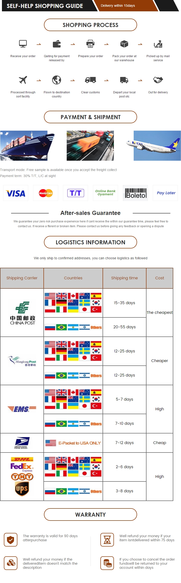A6: You can send us the inquiry of the products you want to buy, detailed requirements and quantity, we will offer you the best cost, if you need us to send samples for quality check, no problem we can send, if no need Sample, we can create Alibaba Trade Assurance for you.