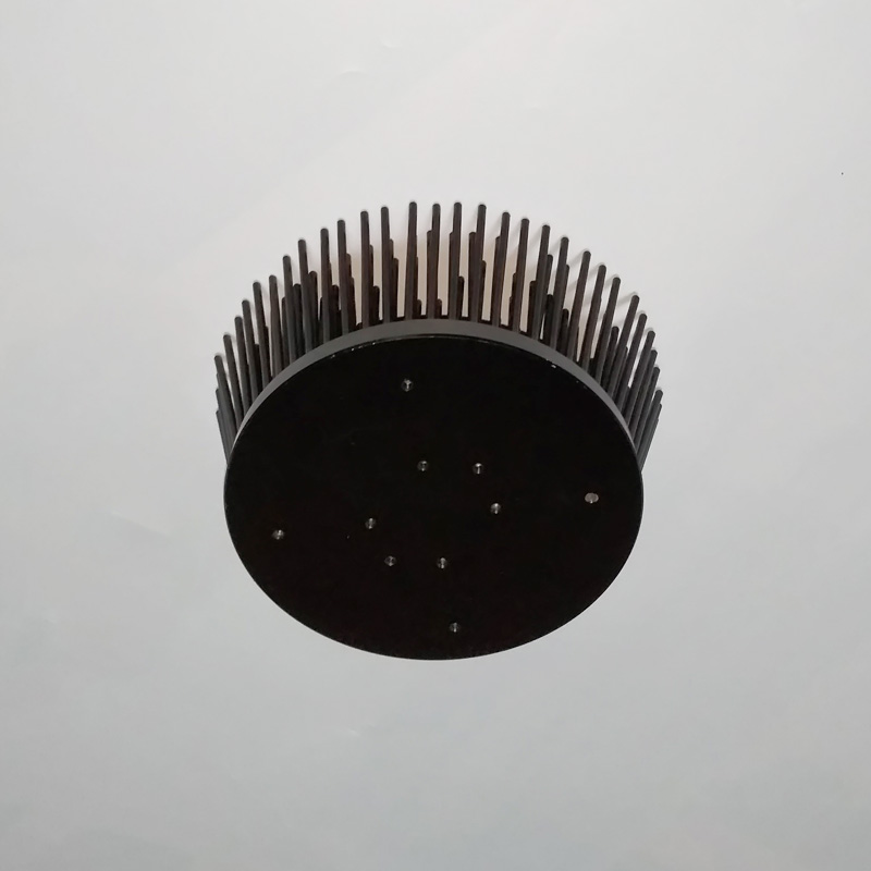 40w Diameter 133mm Height 40mm Black Anodized Round LED Lamp Pin Fin Aluminum Cooler Radiator with Axial Fan