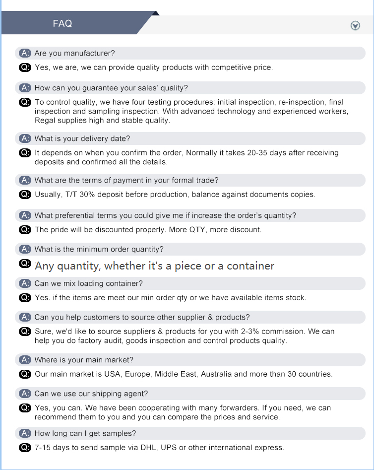 | payment terms: | L/C, Western Union, D/P, D/A, T/T, MoneyGram | Mail packing: | yes |