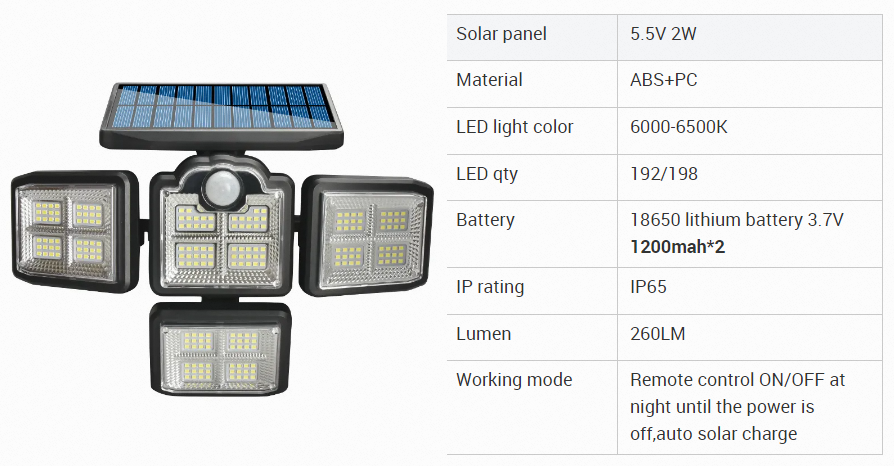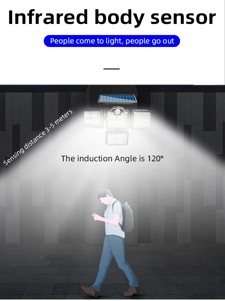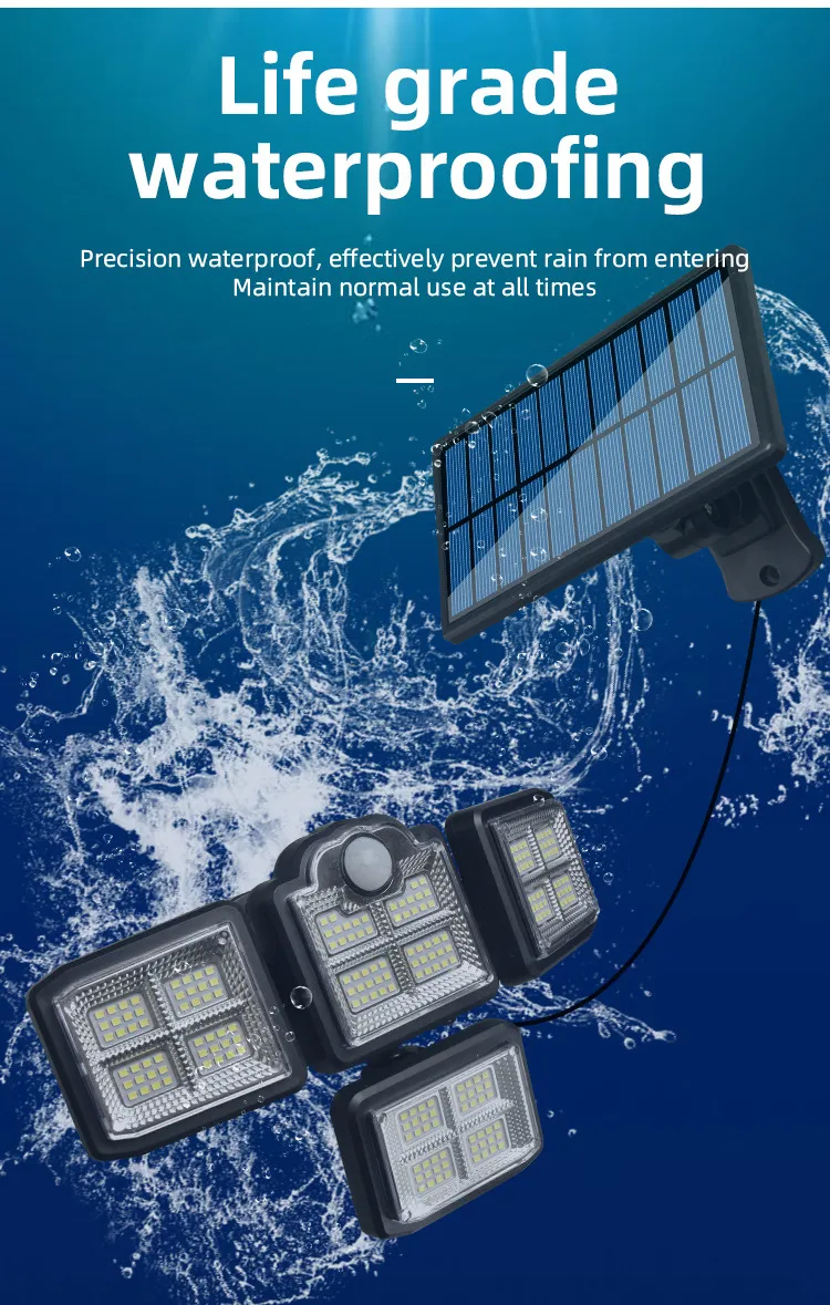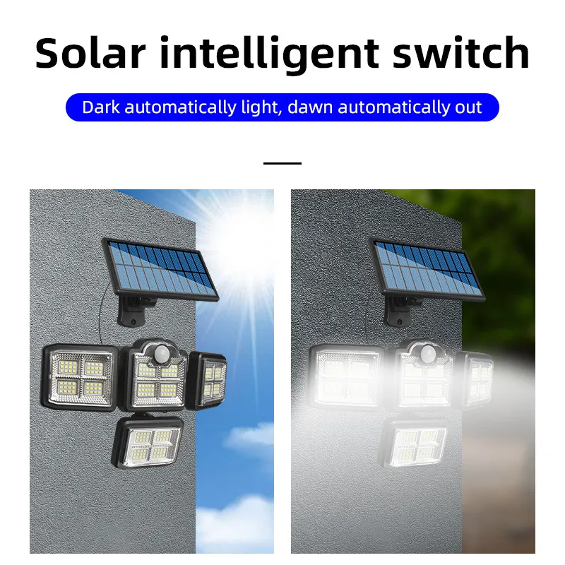 Four-head rotating split waterproof human body induction street lamp garden lamp solar wall lamp