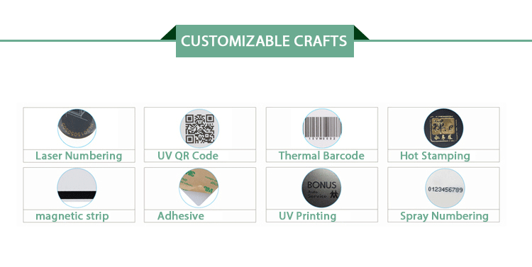 | customization options | Encoding, UID printing, magnetic stripe, barcode, QR code, etc. |