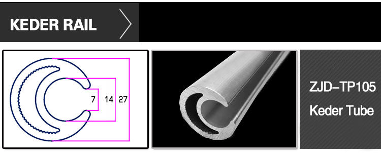 6000 series ZJD-KS108 anodized aluminum keder rail profile extrusion for awning