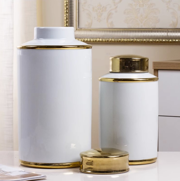 Ceramic Ginger Jars White And Gold Plated Jars Ceramic Jars With Lids