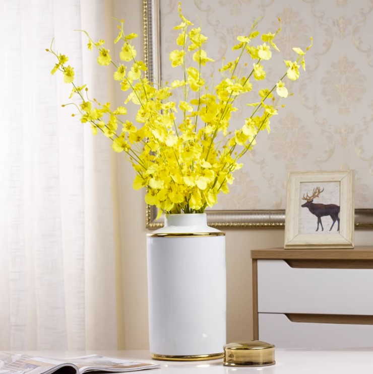 Factory sale custom size luxury ceramic vase painting design gold vase for home decoration