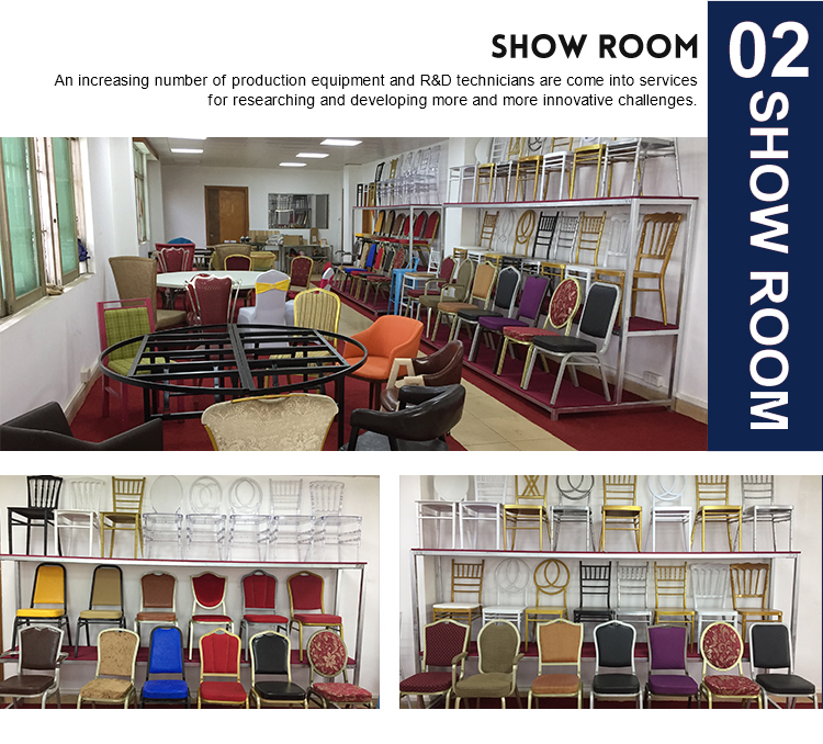 Q1. Are you a manufacturer or a trading company? A1. Of course we are a professional manufacturer of iron banquet tables and chairs. Q2. Can we have our logo or company name to be printed on your products or package? A2. Yes, your logo or company name can be printed on our products or package. Q3. Are samples free? A3. Sample fee is required, it will be returned to you when you accept the order for mass production. Q4. How long is the delivery time? A4. It will take about 7 days. We also have most of the normal production products for storage, if we have a specific stock, we can ship it immediately. |