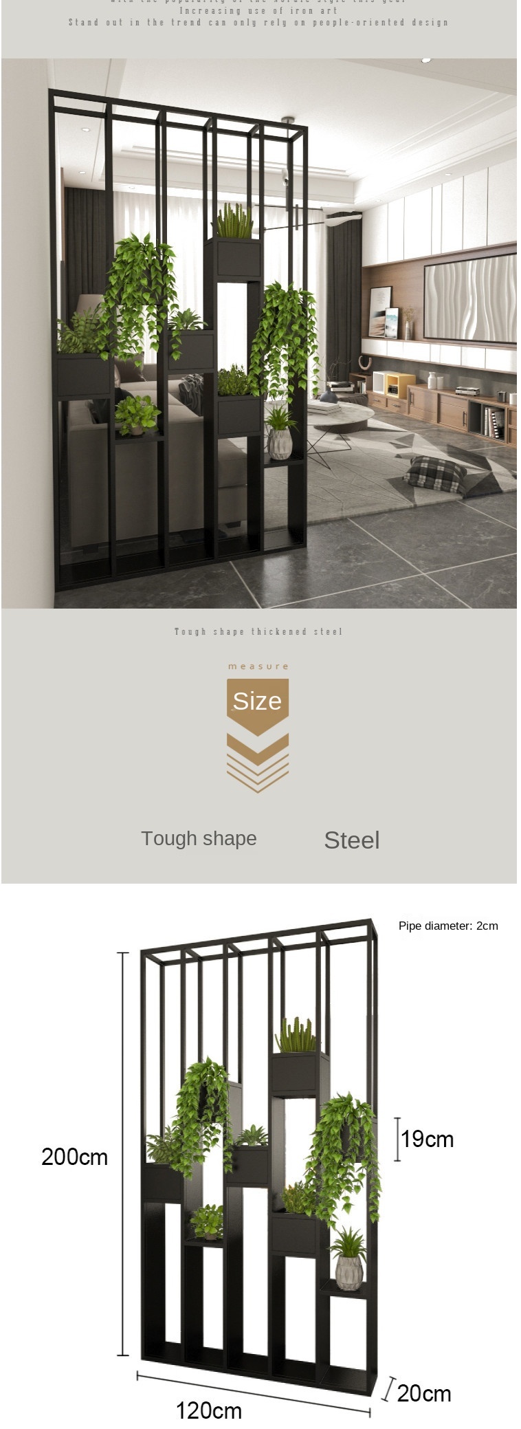 Modern wrought iron home living room partition screen storage shelf multi-functional flower rack room partition dining room decoration