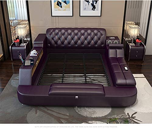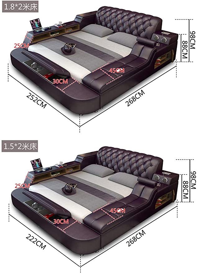Modern Leather Fabric Bed With Storage Box Functional Chestrfield Style Bedroom Furniture Set With USB Charger Multimedia Speaker