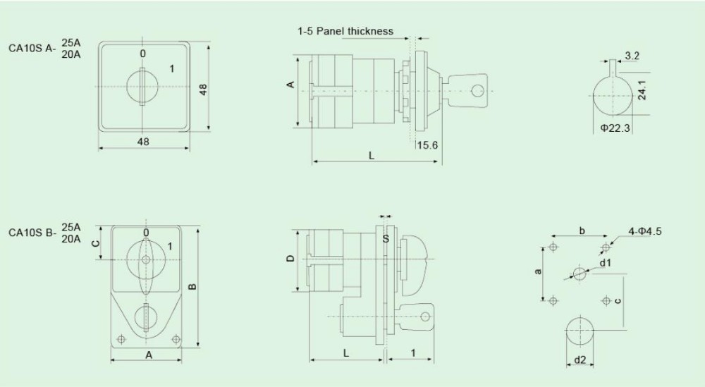 The CA10 series control and load switches provide a solution for most cam switch operations. Different types are available as control switches, switches installed in equipment, and switches for motor control according to IEC60947-3.