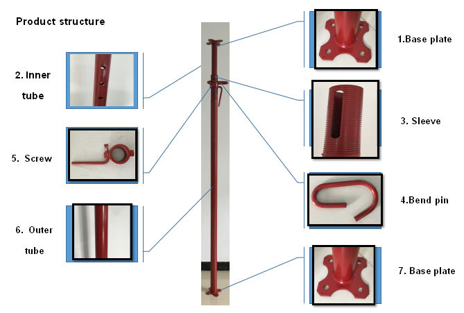 Package preview: color: customer request brand: Tate standard: EN74/BS1139/AS1576 Scaffold Part Type: scaffolding props MOQ: 100 high: 3m/3.5m/3.8m/4m/5m model: steel pillar Packaging Details: 1. Packing of steel bars 2. Plastic packaging of steel pipes for each bundle 3. Waterproof plastic inside..... -