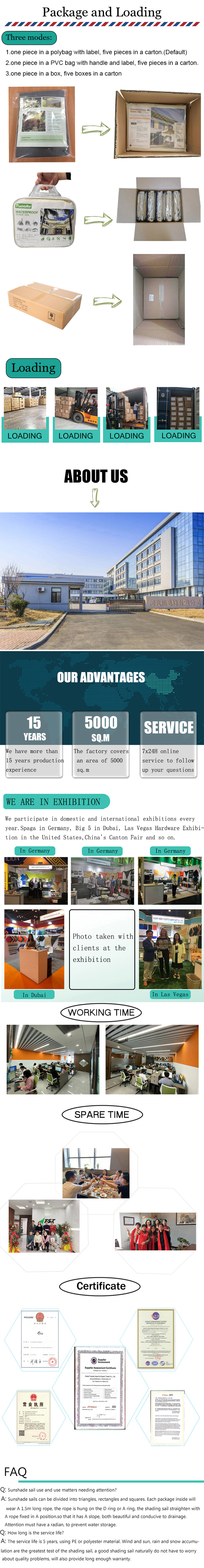 | Sail finishing: | uncoated | product name: | Custom available shade system sails are easy to install |