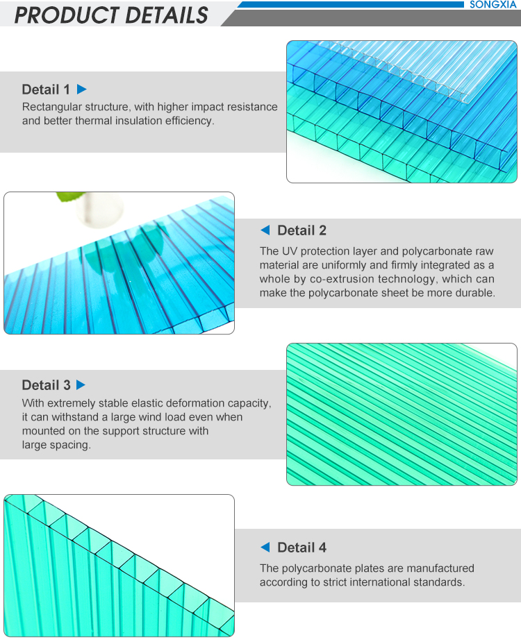 application: Greenhouse Skylight Carport Awning Roof etc. Outdoor brand: Xinhai thing: polycarbonate plastic sheet color: Clear, Green, Blue, Brown, Opal, Clear or as per request Origin: Hebei china Project Solution Capabilities: others Packaging Details: Polycarbonate Hollow Panel Price...... -