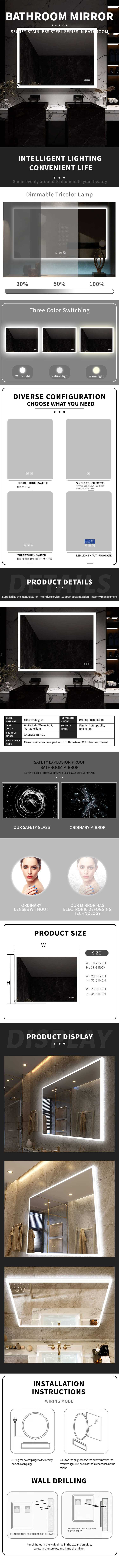 Factory Custom Lighted Rectangular Smart Bathroom Mirror with LED Lights for Cabinet Tub Washbasin espejos