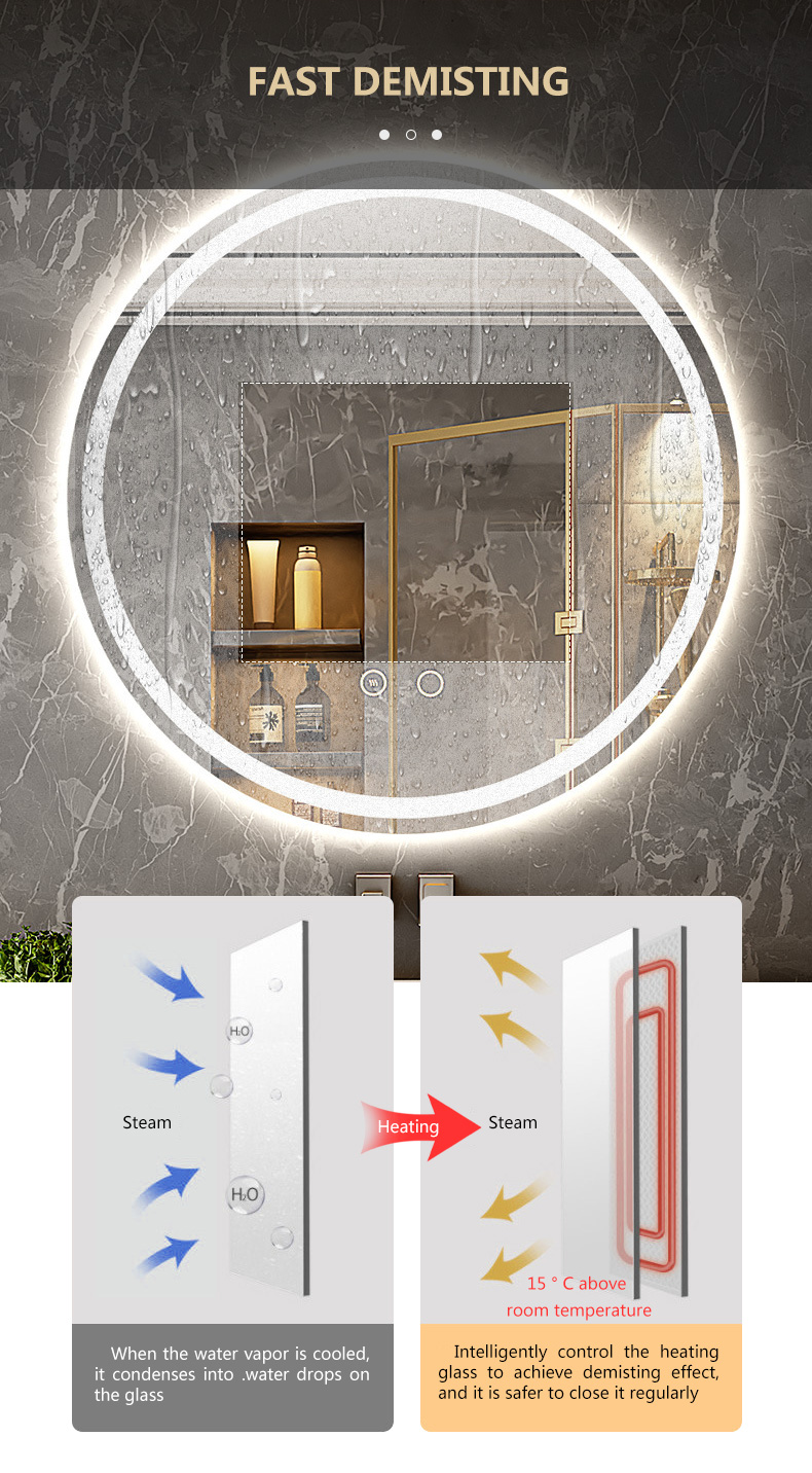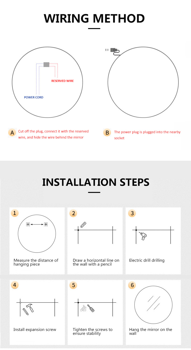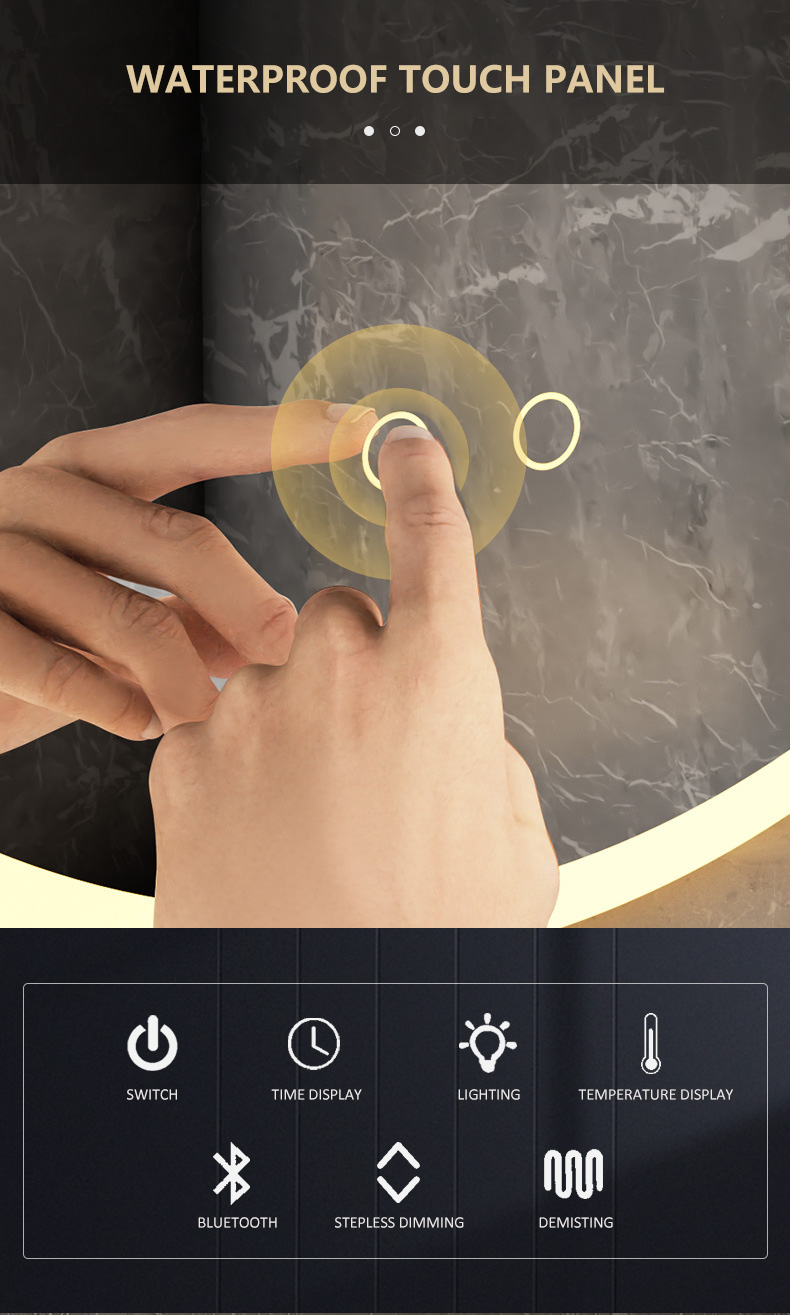 | mirror material | Ultra HD 5mm silver mirror with waterproof LED light strip, optional function switch |