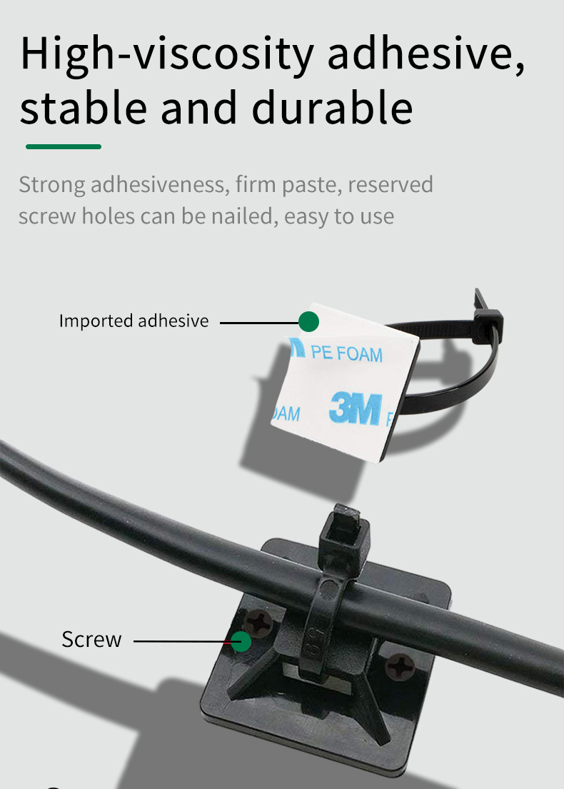 | Nylon Wire Management Clips Wall Mount Cable Tie Mount Organizer Bracket Base Self-Adhesive Nylon Cable Tie Mount |