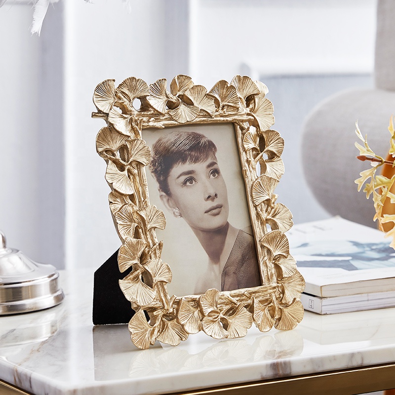 Golden Small Photo Rectangular Photo Frame Ornament European Retro Resin Photo Frame Creative Decorative Frame