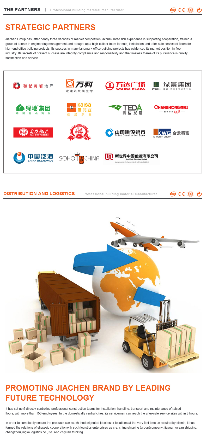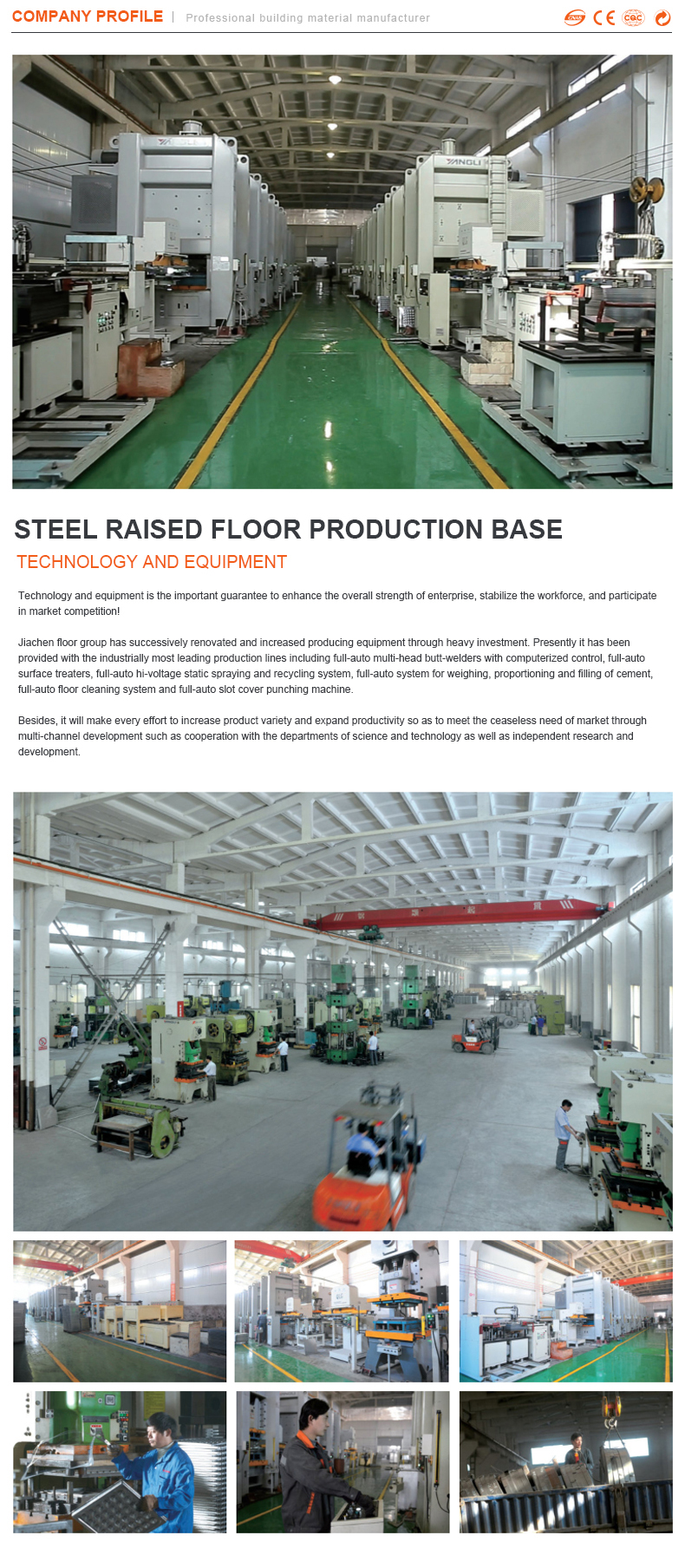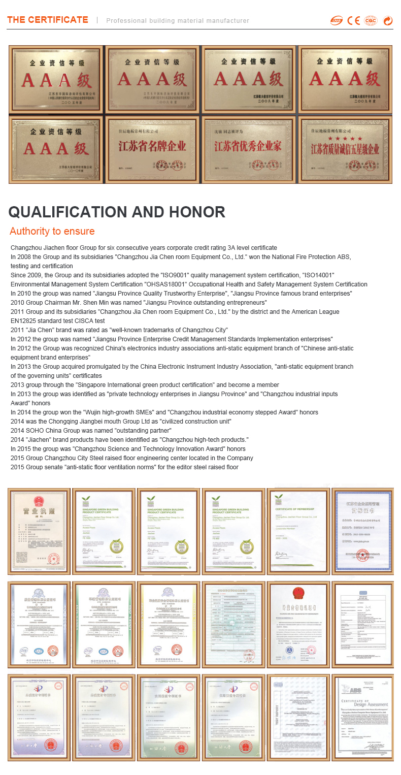 All floor support systems and accessories are produced by Jiachen Group. The support system can be adjusted according to the installation methods of different specifications and models.