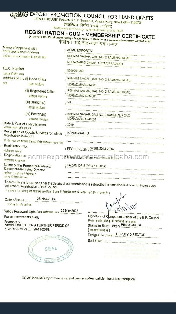 We are located at Rehmat nagar line # 2 sambhal road moradabad-up-india. No matter which way you look at it, our company is unmatched: quality, variety, range, compliance with customer specifications, packaging and delivery. We have a well-equipped quality control department to ensure that products comply with all major international standards.