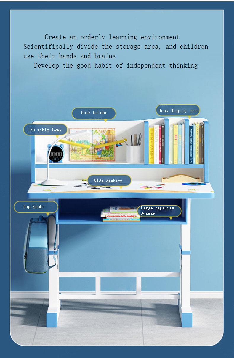 model: YJ-K006 Function: Height Adjustable Ergonomic Desk for Children application: Kitchen, bathroom, home office, living room, bedroom, dining room, baby and children, outdoor, hotel, apartment, office building, hospital, school, shopping mall, sports venue, leisure facility, supermarket,...... -