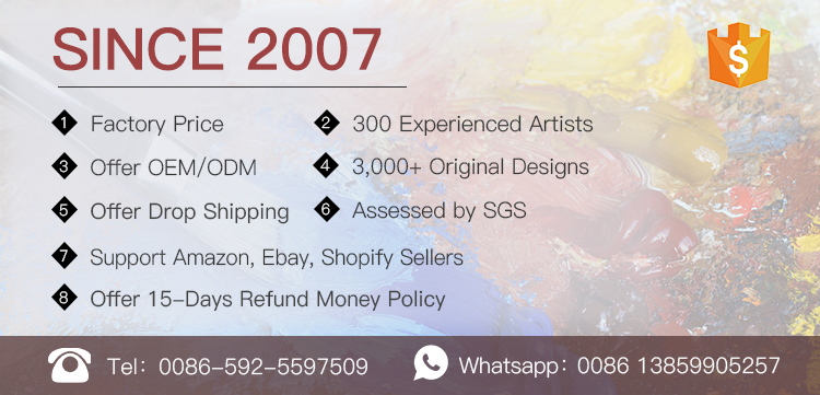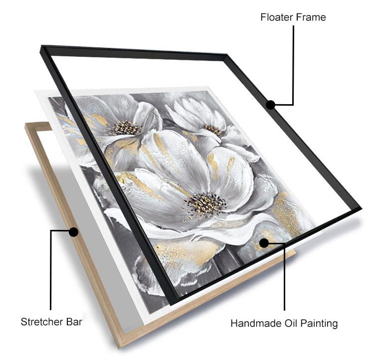 design: Welcome custom design Package preview: Moderate: Oil OEM/ODM: Yes style: Abstract suject: flower model: HM-113 Origin: Zhejiang, China payment terms: L/C, Western Union, T/T, MoneyGram Floating frame: Various frame colors to choose from Material: Canvas+Pine Stretcher ID: custom logo port:..... -
