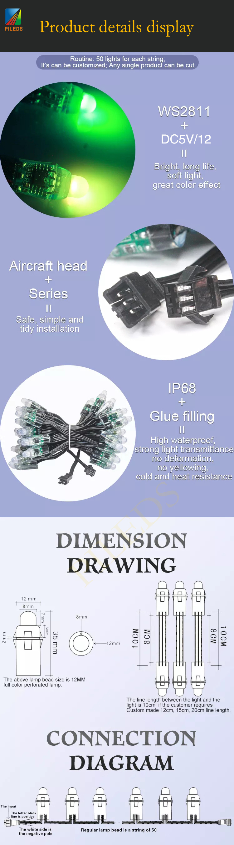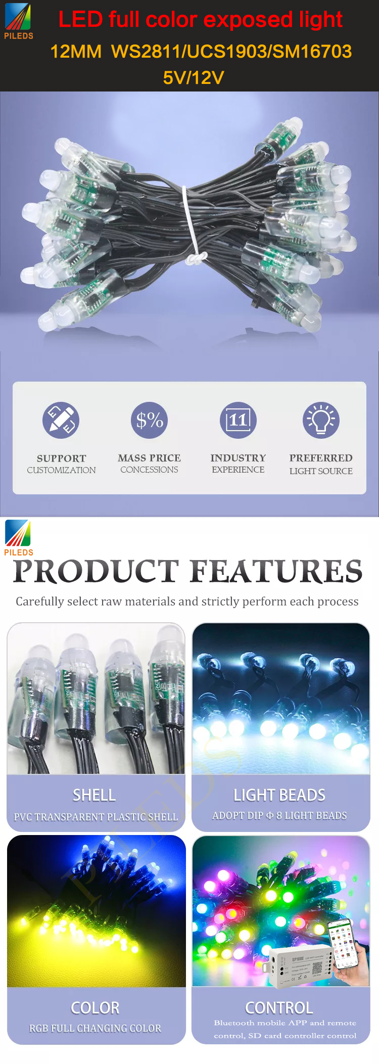 | Product Keywords | 12mm LED pixel ws2811, shortened LED Christmas lights, 12mm LED pixel string |