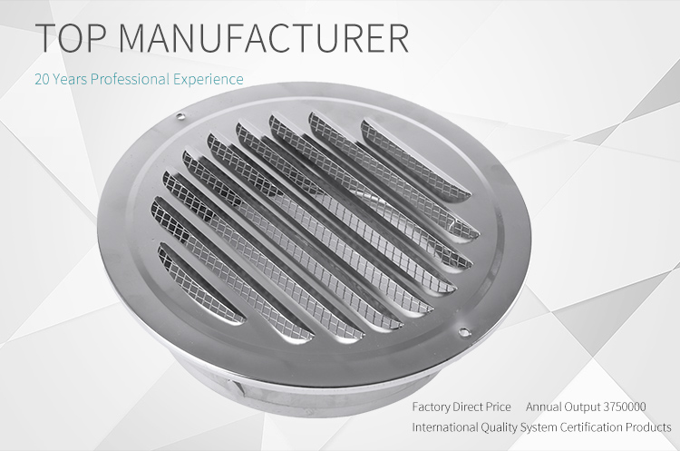 Top Manufacturers Ventilation System Exterior Wall Stainless Steel Venting Cap with Insect Mesh Grille