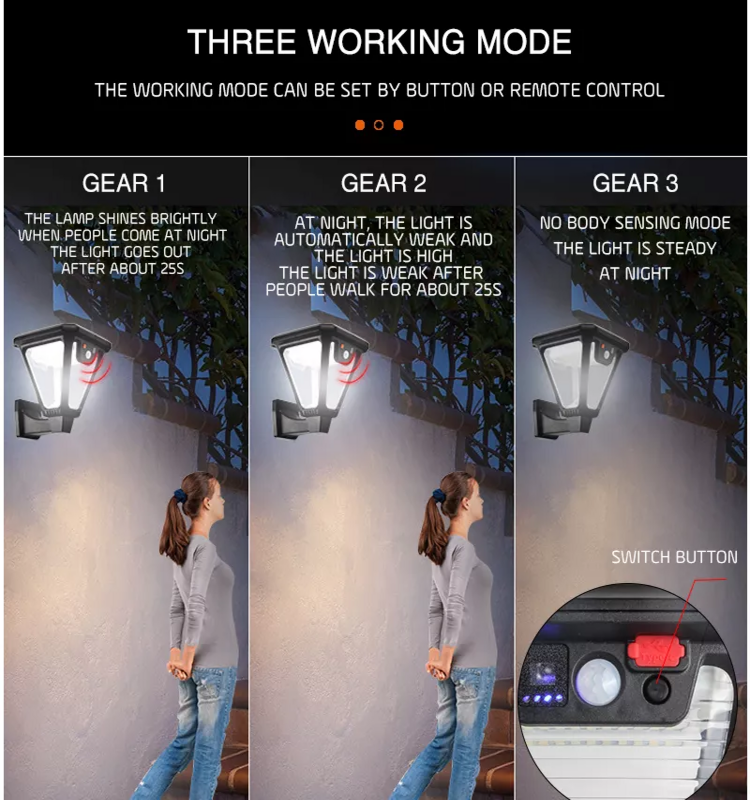 Hot Sale Waterproof 77 LED Wall Light Remote Control Camera Human Body Sensor Shape Sensor Solar Powered Outdoor Wall Light