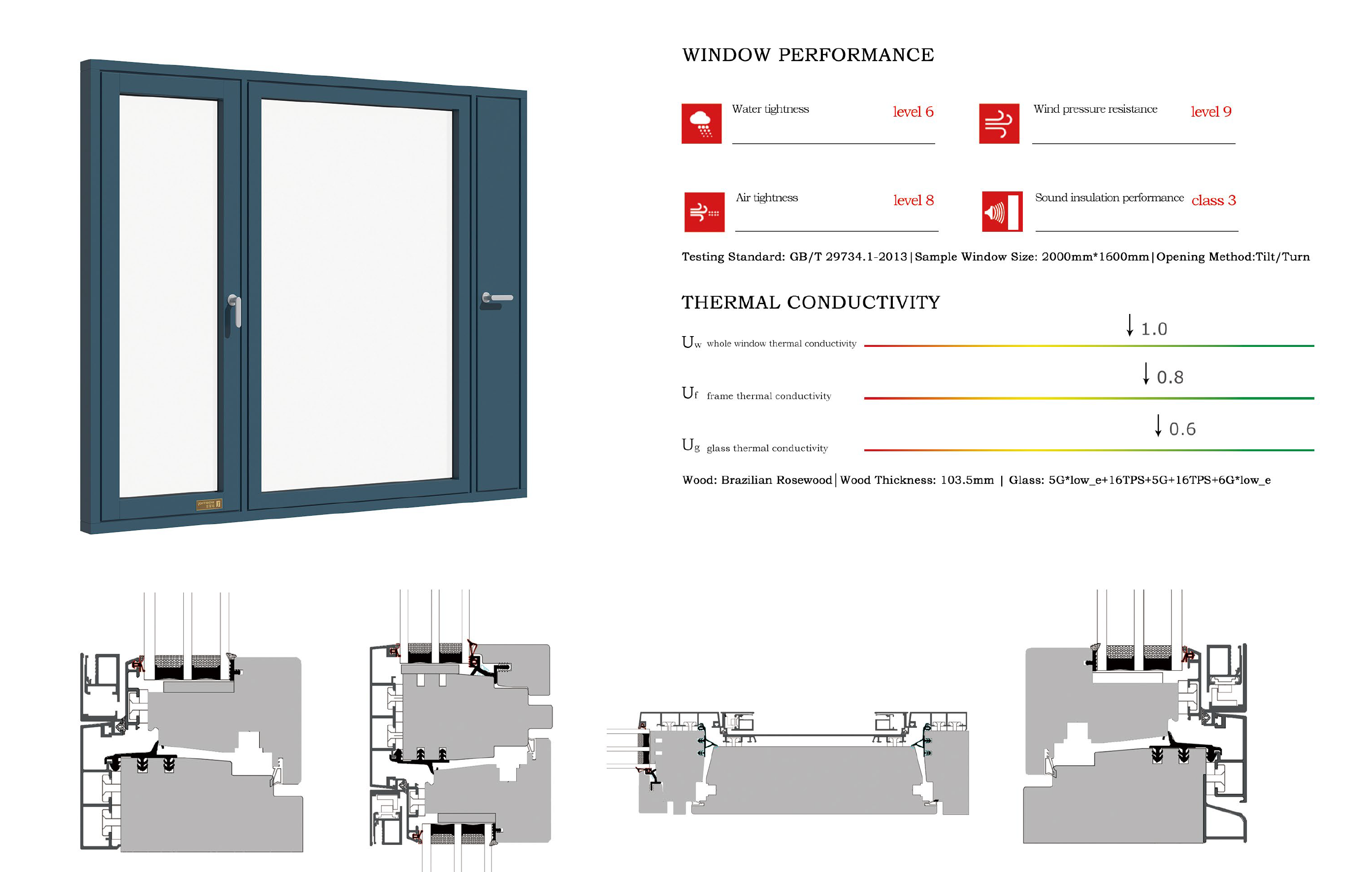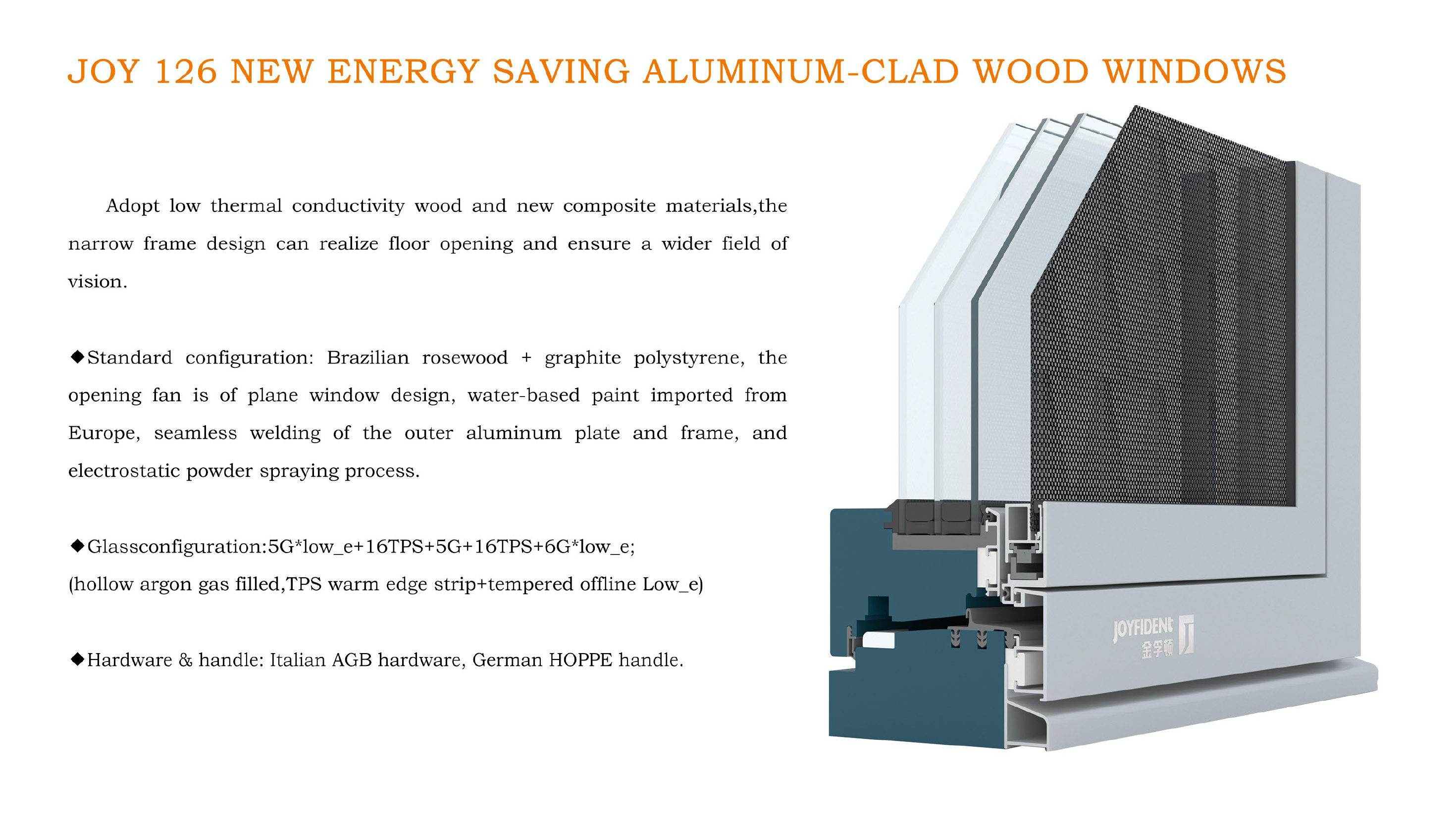 JOYFIDENT 126 series energy-saving passive house aluminum-clad wooden windows