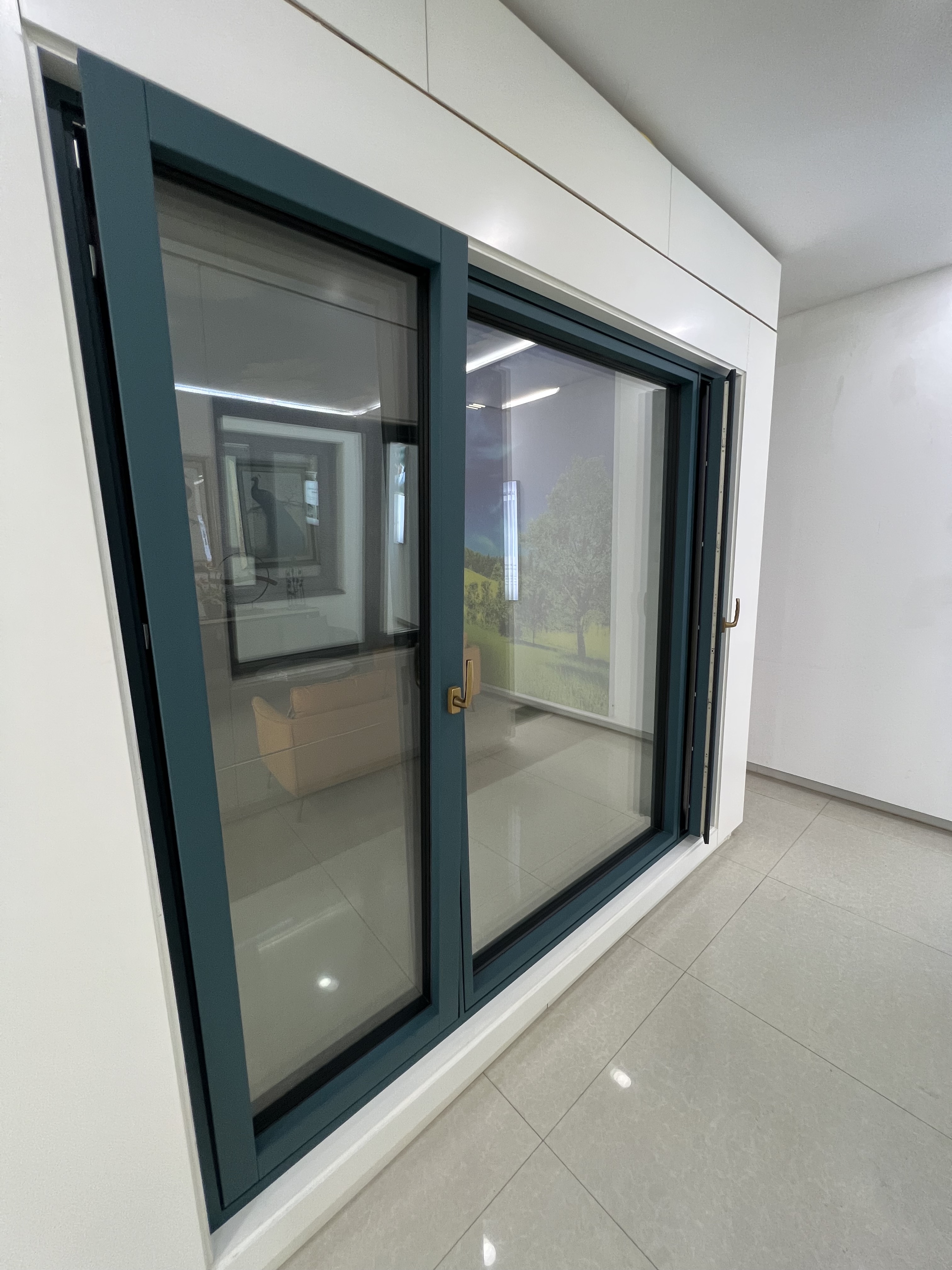 Glass: Three-color glaze, etc. Open style: swing Surface treatment: powder coating etc. Material: aluminum Package preview: Function: insulation design style: modern Fly screen: Fiberglass screens or customized Profile thickness: 1.8mm-2.5mm brand: Zhong Yi Jia Teng application: office building...... -