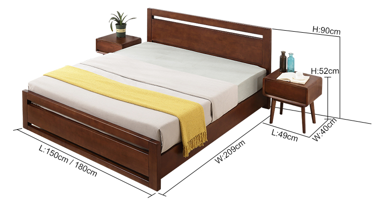 | product name: | home bedroom furniture wooden frame double bed | size: | Length 209CM*Width 150CM/Length 209CM*Width 180CM |
